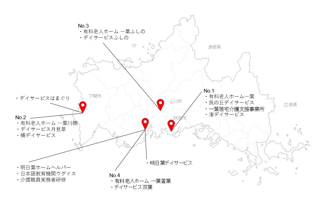 弊社は、山口県下関市・山口市・防府市などにデイサービスや有料老人ホームを数多く運営しております。地域の皆様に愛されるよう、地域に根差した活動やスタッフ教育、円滑な施設運営を行っております。